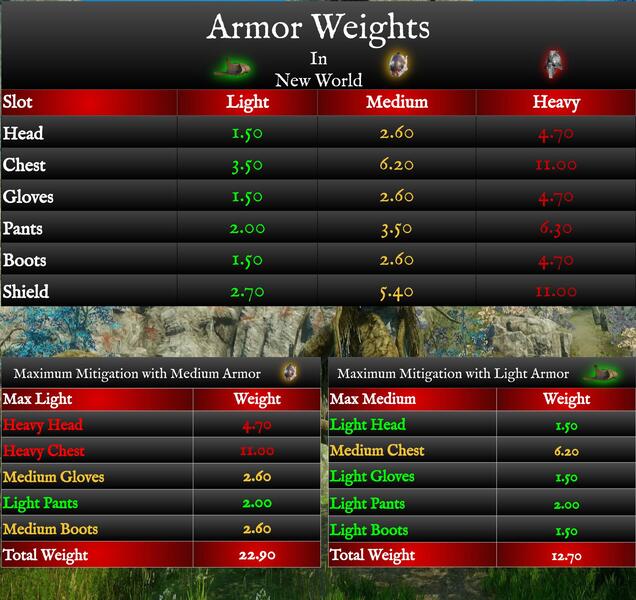 First, will go through which pieces you would wear in order to receive optimal mitigation for the light and medium equip weights in New World.