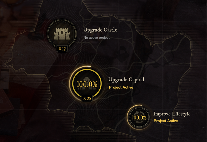 These town missions award XP and currency, but more importantly they advance the Town Project. For example, if you want to upgrade your Settlement’s Forge you must start a town project. To do so, you would activate the “Upgrade Forge” Town Project at the Town Hall. Then, members of your company, and anyone else living in town can work together to complete the project.“