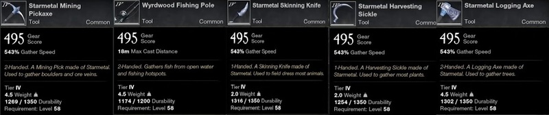 Tiers of gathering tools follow the same 5 tier progression as other gear in the game.