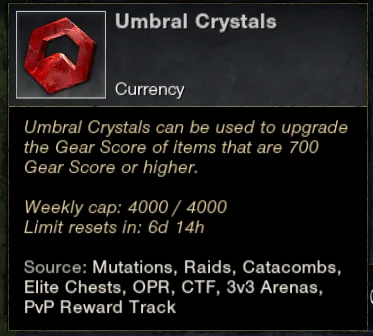 Once you’ve obtained all desired gear between 700-725 from older content, you can begin to push to 730 and then 800 gear score with Umbral Crystals. However, be aware that you can skip most of this and head straight into the new content.