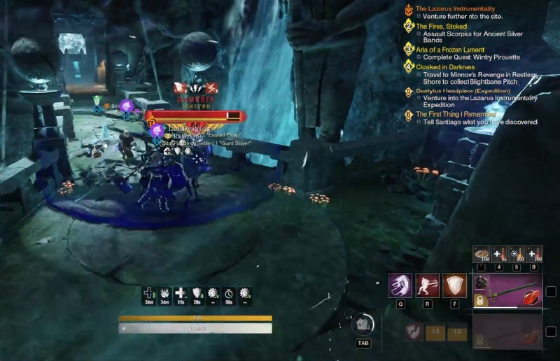 Your first encounter within the Expedition happens only a few steps from the entrance. You will encounter a mini boss named Damysys. He is a shield and spear user and has 2 adds with him. The 2 adds are called Lazarus Avengers, and are normal mobs that can be easily taken down.