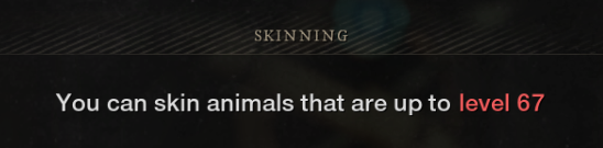 Finally, make sure your Dexterity Attribute is as high as possible while leveling Skinning.