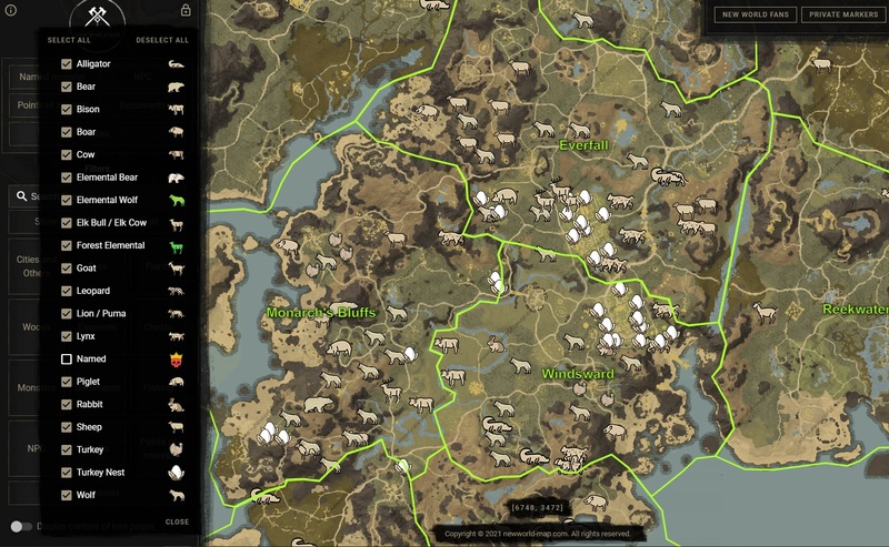 All animal spawns can be found by using our interactive map and filtering by whichever animal you are looking for. You can also find all fishing hotspots, provision crates, crops, and herbs by using the map as well.