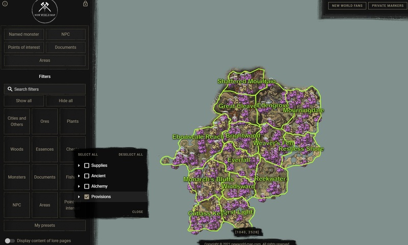 You can find every provision container in New World by checking our Interactive map and filtering by Chests and then Provisions.