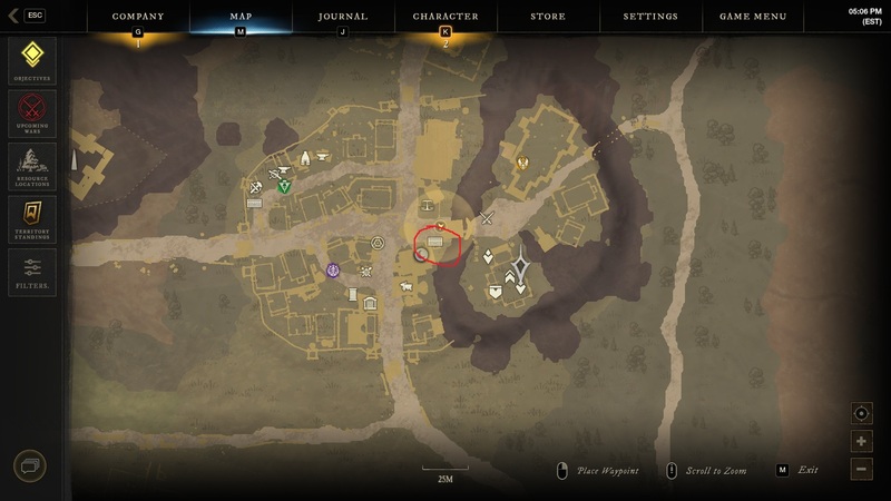 Banking in New World Aeternum comes in the form of a personal storage unit located in each Settlement. You can find the storage locations by opening up the map using the default key of “M” and scrolling in on a settlement until you can see the icons. The storage icon is noted by a box or chest icon on the map.