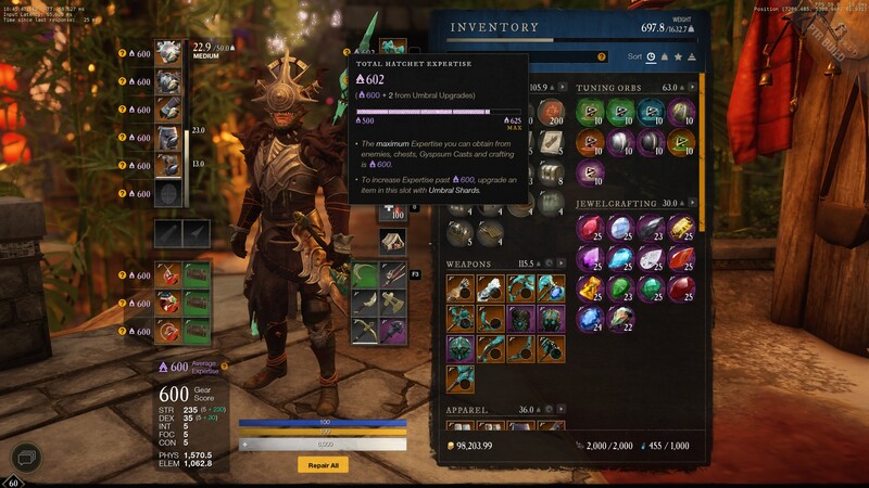 For example, if you upgrade a legendary hatchet from gear score 600 to gear score 602 using Umbral Shards then that hatchet will become more powerful and will be a 602 gear score item. Along with the new item upgrade, you also have 602 in that Expertise slot.